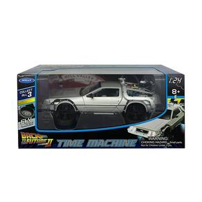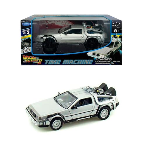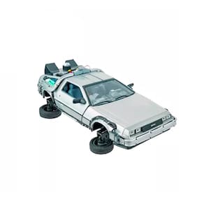 Este modelo da Welly representa o DeLorean DMC-12 como aparece em “De Volta para o Futuro II”, com modificações futuristas que permitem viagens ao ano de 2015. Em escala 1:24 e com 17 cm de comprimento, a miniatura traz os elementos visuais que marcaram a segunda parte da trilogia.