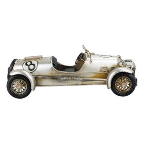 Enfeite decorativo em forma de carro esportivo prateado com 10 x 30 x 14 cm de dimensão, detalhes e cores muito realista. Material: metal; Atenção: este produto tem apenas função decorativa, não é um brinquedo e nem um carro de verdade!