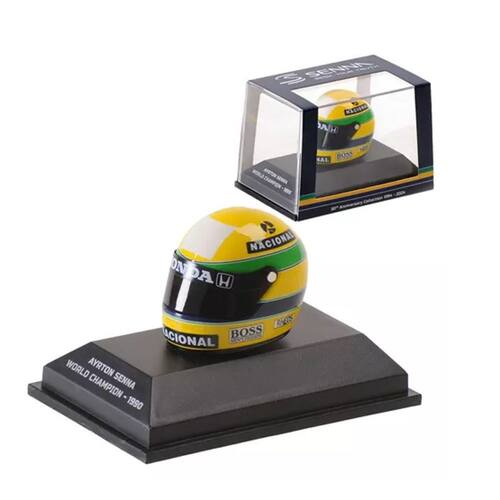 Garanta já a Miniatura F1 Capacete Ayrton Senna Bicampeão 1990 1/8 e celebre a história do automobilismo! Esta miniatura não é apenas um item de coleção, mas uma verdadeira homenagem a um dos maiores ícones do esporte. Não perca a chance de ter essa peça única na sua coleção! Fiel reprodução do capacete por Ayrton Senna, que o consagrou como bicampeão em 1990, apresentando os icônicos desenhos e as cores vibrantes que o tornaram um nas pistas.