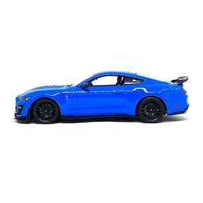 Miniatura do Ford Mustang Shelby GT500, 2020, da série Special Edition, na escala 1:18. Produzida em metal, com detalhes em plástico, apresenta pneus emborrachados, abertura das portas, do capô, e porta-malas, e pintura na cor azul.
