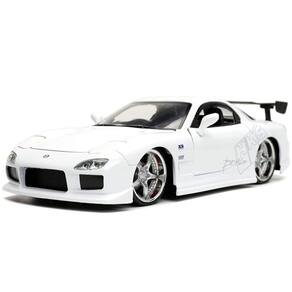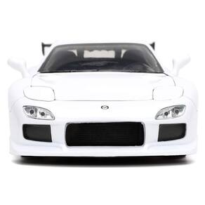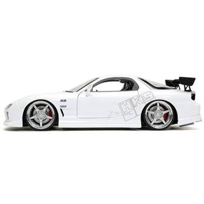 Reviva a era de ouro do tuning com esta réplica Die-Cast do lendário Mazda RX-7 (1993) da saga Velozes e Furiosos, trazido a você pela Jada. Este modelo de alto detalhe captura a essência do icônico carro esportivo com um acabamento branco imaculado. Os detalhes são o ponto alto o carro exibe grafismos autênticos, incluindo o logo HKS, além de rodas cromadas personalizadas, body kit agressivo e um grande spoiler traseiro.