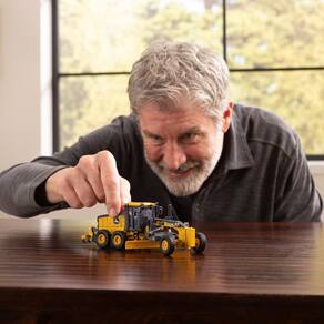 Construção Robusta: Corpo principal e componentes chave fabricados em metal fundido (die-cast). Articulação Completa: Chassi central e eixo dianteiro articulados, permitindo poses realistas de trabalho. Lâmina Funcional: A lâmina central é totalmente ajustável, podendo ser orientada em múltiplos ângulos. Ripper Traseiro Móvel: O escarificador (ripper) traseiro pode ser levantado e abaixado, pronto para simular a quebra de solos compactos. Motor Visível: Os painéis laterais do corpo se abrem, revelando uma reprodução detalhada do motor. Detalhes da Cabine: Interior da cabine fielmente reproduzido, com rampas de acesso, luzes e espelhos retrovisores que aumentam o realismo.