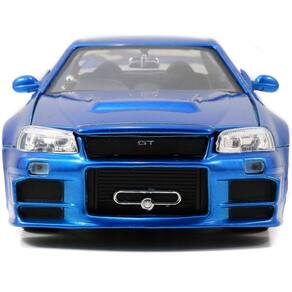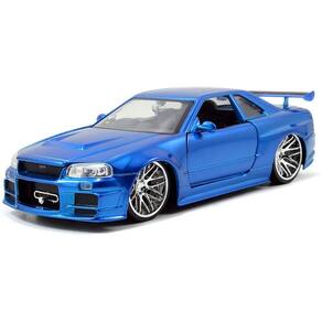 Miniatura Nissan Skyline Gtr - Bnr 34 Azul Jada Toys 1/24 Fabricado em metal com partes em plástico. Miniatura em escala 1:24. Cor: Azul. Fabricante Jada Toys. Pneus de borracha sintética. Abre capô dianteiro, portas e capô traseiro. Produto bem detalhado e com ótima qualidade!