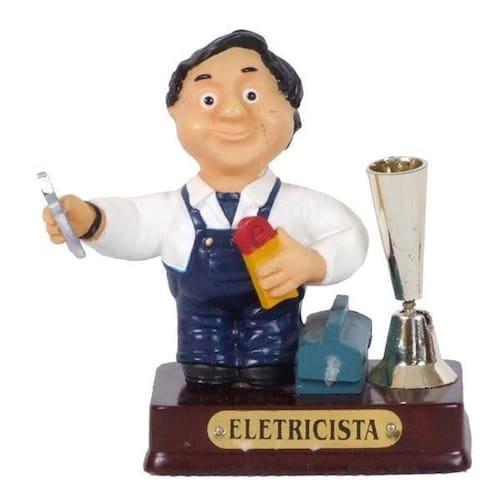 Com essa miniatura de profissional eletricista no tamanho de 8 cm você pode presentear amigos, colegas de trabalho, formandos e profissionais em suas datas comemorativas ou ainda fazer sua própria coleção de profissionais. A peça é produzida em resina e base de madeira que deixara o ambiente ainda mais bonito. Além de decorar o ambiente essa peça tem como outra utilidade um porta caneta.