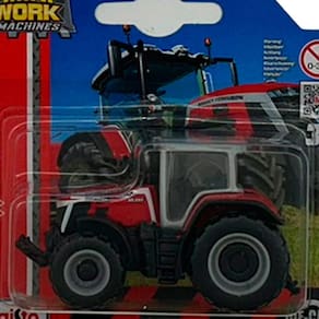Com cabine detalhada e estrutura robusta, o modelo permite ambientações em cenários agrícolas, simulando tarefas como preparo de solo ou manejo de plantações. A pintura vermelha reforça a identidade da marca e contrasta com os outros modelos da linha, como o Valtra branco e o Fendt verde, garantindo diversidade visual à frota rural.