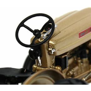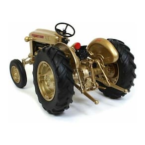 Direção funcional com hastes de direção e links de arrasto Capô fundido, parte inferior do corpo, Eixo dianteiro, pára-lamas, Rodas dianteiras e traseiras Die Cast 3 Point Hitch aumenta e diminui Assento fundido vira para cima Alavanca de câmbio da caixa Select-O-Speed cromada prateada O botão de controle da tomada de força dos pivôs é prata Pneus reais “macios” cromados