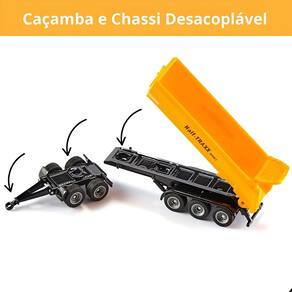 Construído com a qualidade superior que só a Siku oferece, este modelo combina metal fundido (diecast) com detalhes em plástico de alta durabilidade. O conjunto é composto pelo icônico trator JCB Fastrac, um dolly de dois eixos que garante estabilidade e um reboque basculante de grande capacidade. Cada detalhe, desde os pneus de borracha com sulcos realistas até a cabine removível do trator, foi pensado para proporcionar a máxima autenticidade.