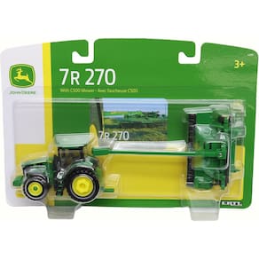 Este conjunto dá vida à agricultura de ponta. O trator 7R 270 é um dos mais versáteis e tecnológicos da John Deere, e a segadora C500 é a ferramenta ideal para um corte rápido e eficiente do feno. Juntos, eles formam uma dupla imbatível, pronta para ser a estrela do seu diorama, o destaque da sua coleção ou um brinquedo robusto e cheio de funcionalidades.