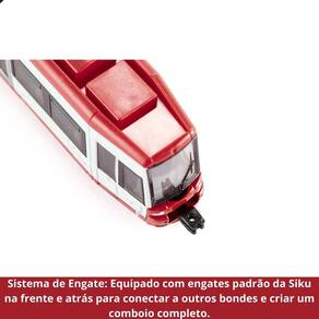 Modelo Autêntico: Reprodução fiel do design do bonde elétrico Bombardier. Construção Robusta: Carroceria em metal diecast que garante durabilidade e um toque realista. Rodas de Rolagem Suave: Desliza perfeitamente em superfícies planas, ideal para brincadeiras. Sistema de Engate: Equipado com engates padrão da Siku na frente e atrás para conectar a outros bondes e criar um comboio completo. Escala Perfeita: Na escala 1:87, é totalmente compatível com cenários e veículos de ferromodelismo HO. Detalhes Realistas: Janelas translúcidas e pintura detalhada que enriquecem a experiência visual.
