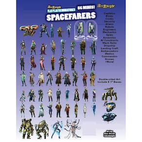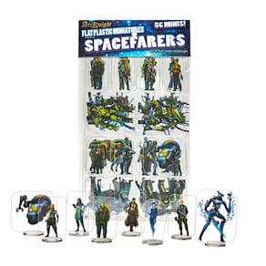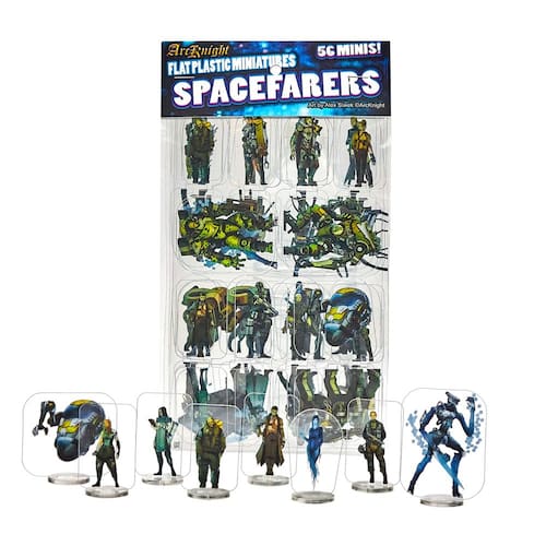 Arcknight Miniaturas planas de plástico: Spacefarers; 56 minis exclusivos com tema de ficção científica para Starfinder; estatuetas acessíveis e skinny para SF, Shadowrun e outros jogos de RPG de mesa - Plástico transparente durável e flexível - Coloca facilmente dentro e fora das bases - Embalagens planas para armazenamento ou viagem - Alta cor; impressão dupla face