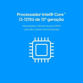 Conta com processador Intel® Core™ i3 de 12ª geração, com 6 núcleos e frequência de até 4,4 GHz. Possui consumo de energia de 15W, adequado para operação contínua.