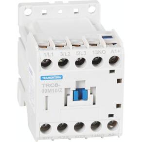 Os minicontatores são destinados ao acionamento remoto de equipamentos elétricos, principalmente motores trifásicos. Os minicontatores Tramontina apresentam elevada robustez e confiabilidade, podendo ser aplicados em automações industriais, acionamento de bombas d?água, acionamento de sistemas de iluminação entre outras. A linha de minicontatores TRC8 está disponível na faixa de corrente de 6A a 12A, com tensão de comando em sistema VCC, além de dispor de contatos auxiliares integrados.OrientaçõesCorrente nominal: 9A