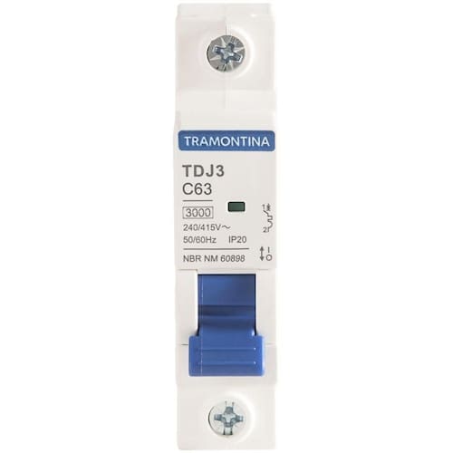 Minidisjuntor Tdj3ka 1 P 63 A Curva C Tramontina Minidisjuntor TDJ3kA 1 P 63 A curva C Tramontina Leve alta qualidade para seus projetos elétricos, com o minidisjuntor TDJ3kA 1 P 63 A curva C Tramontina. Desenvolvido para garantir a segurança da instalação ele preserva a rede elétrica e seus equipamentos em caso de sobrecarga ou curto-circuito. Ele possui janela de inspeção do estado, é instalado no quadro de distribuição e dimensionado de acordo com a potência dos equipamentos, números de tomadas e quantidade de lâmpadas. Sua montagem é individual, sem a necessidade de desmontar o barramento, o que otimiza o tempo de instalação. Um item com a qualidade Tramontina, que você já conhece e confia!