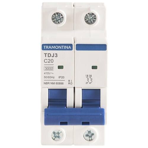 Minidisjuntor Tdj3ka 2 P 20 A Curva C Tramontina Minidisjuntor TDJ3kA 2 P 20 A curva C Tramontina Garanta o melhor para seus projetos elétricos, com o Minidisjuntor TDJ3kA 2 P 20 A curva C Tramontina. Desenvolvido para garantir a segurança da instalação, ele preserva a rede elétrica e seus equipamentos em caso de sobrecarga ou curto-circuito. Ele possui janela de inspeção do estado, é instalado no quadro de distribuição e dimensionado de acordo com a potência dos equipamentos, números de tomadas e quantidade de lâmpadas. Sua montagem é individual, sem a necessidade de desmontar o barramento, o que otimiza o tempo de instalação. Um item com a qualidade Tramontina, que você já conhece e confia!