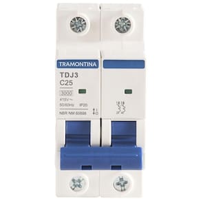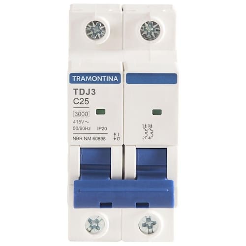 Minidisjuntor Tdj3ka 2 P 25 A Curva C Tramontina Minidisjuntor TDJ3kA 2 P 25 A curva C Tramontina Garanta o melhor para seus projetos elétricos, com o Minidisjuntor TDJ3kA 25 P 2 A curva C Tramontina. Desenvolvido para garantir a segurança da instalação, ele preserva a rede elétrica e seus equipamentos em caso de sobrecarga ou curto-circuito. Ele possui janela de inspeção do estado, é instalado no quadro de distribuição e dimensionado de acordo com a potência dos equipamentos, números de tomadas e quantidade de lâmpadas. Sua montagem é individual, sem a necessidade de desmontar o barramento, o que otimiza o tempo de instalação. Um item com a qualidade Tramontina, que você já conhece e confia!