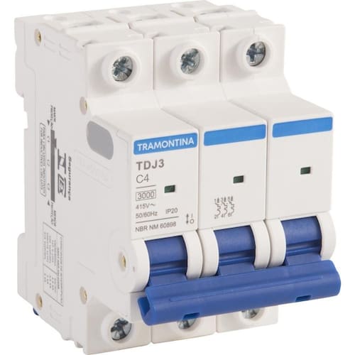 Minidisjuntor Tdj3ka 3 P 4 A Curva C Tramontina Minidisjuntor TDJ3kA 3 P 4 A curva C Tramontina Com o Minidisjuntor TDJ3kA 3 P 4 A curva C Tramontina você irá garantir alta qualidade para seus projetos elétricos. Desenvolvido para garantir a segurança da instalação, ele preserva a rede elétrica e seus equipamentos em caso de sobrecarga ou curto-circuito. Ele possui janela de inspeção do estado, é instalado no quadro de distribuição e dimensionado de acordo com a potência dos equipamentos, números de tomadas e quantidade de lâmpadas. Sua montagem é individual, sem a necessidade de desmontar o barramento, o que otimiza o tempo de instalação. Um item com a qualidade Tramontina, que você já conhece e confia!