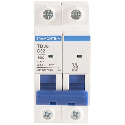 Minidisjuntor Tdj6ka 2 P 32 A Curva C Tramontina Minidisjuntor TDJ6kA 2 P 32 A curva C Tramontina O Minidisjuntor TDJ6kA 2 P 32 A curva C Tramontina é a escolha ideal para quem preza por alta qualidade e funcionalidade em seus projetos elétricos. Desenvolvido para garantir a segurança da instalação, ele preserva a rede elétrica e seus equipamentos em caso de sobrecarga ou curto-circuito. Ele é instalado no quadro de distribuição e dimensionado de acordo com a potência dos equipamentos, números de tomadas e quantidade de lâmpadas. Sua montagem é individual, sem a necessidade de desmontar o barramento, o que otimiza o tempo de instalação. Além disso, possui indicador de liga e desliga que informa o seu status. Um item com a qualidade Tramontina, que você já conhece e confia!