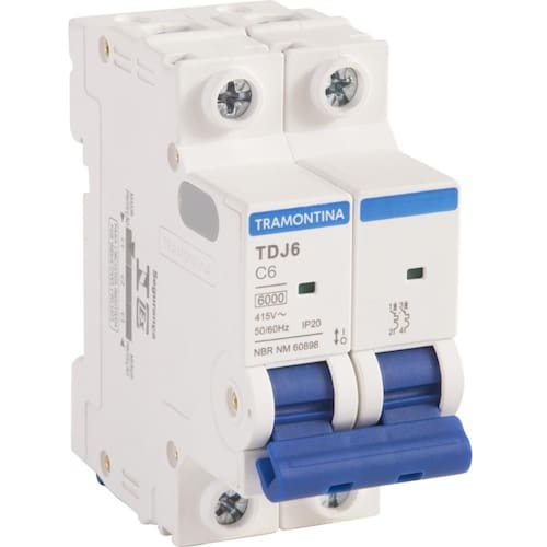 Minidisjuntor TDJ6kA 2 P 6 A curva C Tramontina