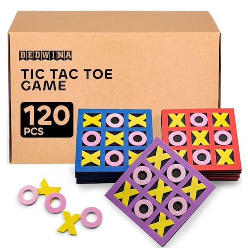 Placas de espuma Tic Tac Toe para crianças a granel Jogue este clássico jogo de 2 jogadores com seus amigos e aprimore suas habilidades. Cada pedido inclui 120 mini placas de espuma Tic Tac Toe. Os tabuleiros medem 12,7 x 12,7 cm e incluem 5 X's e O's coloridos em cada jogo. Eles são embalados individualmente e as placas vêm em uma variedade de cores e reutilizáveis. Esta versão de espuma do jogo favorito de todos os tempos Tic-Tac-Toe é ótima para crianças e terapia ocupacional porque ajuda a desenvolver habilidades de resolução de problemas e pensamento estratégico. All Time Classic - Diversão para todos! O quebra-cabeça Tic Tac Toe também é conhecido como Tic-tac-toe, Tick-tack-toe, tick-tat-toe, tit-tat-toe, Noughts and Crosses ou simplesmente Xs and Os. Um jogador joga X e o outro O, revezando-se marcando os espaços em uma grade 3 × 3. Aquele que conseguir colocar três marcas respectivas em uma linha horizontal, vertical ou diagonal vence o jogo. Se ninguém ganhar, é um empate. O vencedor do jogo anterior é aquele que começa o jogo. Principais características: - Pacote com 120 jogos de tabuleiro - Placas de espuma leve de 12,7 x 12,7 cm - Cores neon brilhantes: vermelho, azul e roxo - Ajuda a desenvolver habilidades de resolução de problemas e pensamento estratégico - Ótimo para lembrancinhas de festa de aniversário para crianças e enchimentos de sacolas de brindes. - Reutilizável e adequado para viagens. - Embalado individualmente A partir de 3 anos. Clique em "Adicionar ao carrinho" para pedir seus jogos tic tac toe hoje e deixe a diversão começar! - Pacote em massa de 120 minijogos TIC-TAC-TOE: Os tabuleiros medem 12,7 x 12,7 cm e incluem 5 X e O's coloridos em cada jogo. Eles são embalados individualmente e as placas vêm em uma variedade de cores: vermelho, azul e roxo. A peça do jogo Noughts and Crosses ou simplesmente Xs e Os são amarelo neon brilhante e roxo - Jogo clássico para todos os tempos! Diversão para todos: obtenha 3 em uma fileira e ganhe com este jogo divertido para todos! Esta versão de espuma do jogo favorito de todos os tempos Tic-Tac-Toe é ótima para crianças e terapia ocupacional porque ajuda a desenvolver habilidades de resolução de problemas e pensamento estratégico - Favoritos de festa incríveis: nosso pacote de jogos de espuma Bedwina tic toc toe a granel tem um ótimo valor e são brinquedos maravilhosos para lembrancinhas de festa. Use-os como enchimentos de sacolas de brindes e observe o prazer que as crianças terão enquanto gostam de brincar com seus amigos - Tamanho perfeito: Fácil de viajar: os minijogos infantis Bedwina tic tac toe são feitos de espuma de alta qualidade e seguros para crianças. Estes mini jogos tic tac toe para crianças são adequados para viagens e perfeitos para levar em viagens rodoviárias. Cada tabuleiro de jogo mede aproximadamente 12,7 cm x 12,7 cm e peças de jogo de 3,8 a 1,27 cm de altura - Escolha premium para suprimentos de festa: ao comprar lembrancinhas de festa em massa para crianças, quebra-cabeças, prêmios de carnaval ou mini jogos de tabuleiro para caixas de tesouro na sala de aula com Bedwina, você pode ter certeza de que sua satisfação é nossa maior prioridade. - Aviso: Risco de asfixia: peças pequenas. Não adequado para crianças menores de 3 anos.