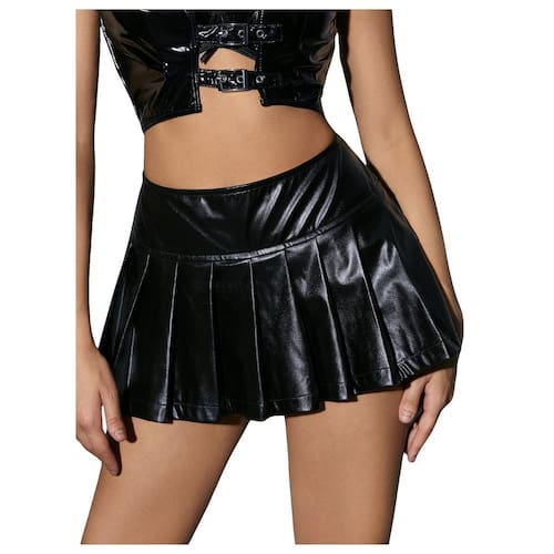 Tabela de tamanhos: (Medidas do produto) PP: Comprimento: 27 cm, Tamanho da Cintura: 71 cm P: Comprimento: 29 cm, tamanho da cintura: 75 cm M: comprimento: 29 cm, tamanho da cintura: 79 cm G: comprimento: 31 cm, tamanho da cintura: 85 cm Estes dados foram obtidos medindo manualmente o produto, pode estar fora de 1-2 cm - Minissaias plissadas de couro sintético - Material confortável e macio com leve elasticidade, esta minissaia é respirável e amiga da pele, super legal para usar em qualquer estação - Característica: Esta minissaia plissada com design de couro mantém você fresca e charmosa no clima quente, prolongando o comprimento da perna - Recomendação de tamanho: consulte a tabela de tamanhos que fornecemos em nossas fotos (não na da Amazon) - Adequado para uso casual, trabalho, encontros, fim de semana, férias, compras, festa, clube, escritório, interior, exterior, streetwear, férias e muito mais