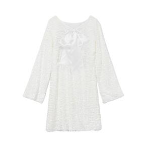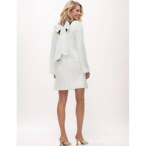 HOCANDY Minivestido feminino de manga longa com lantejoulas brilhantes, costas nuas, laço e gravata borboleta, caimento solto, para festas, coquetéis, glitter, Branco