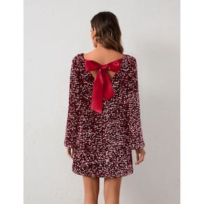 - Design: este vestido curto de lantejoulas com laço nas costas apresenta gola redonda, manga comprida, comprimento curto, ajuste solto, design aberto nas costas; o minivestido com laço brilhante e costas nuas é fofo e sexy, um item essencial para qualquer festa