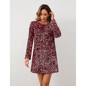 - MATERIAL: O minivestido de lantejoulas de manga comprida é feito de tecido de mistura de poliéster; confortável e elegante; macio ao toque; adequado para qualquer tipo de corpo; vestido solto com glitter para mulheres deixa você brilhar na multidão