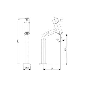 Este misturador é compatível com cubas de apoio. Verifique a altura da sua cuba para garantir o encaixe ideal da bica alta.