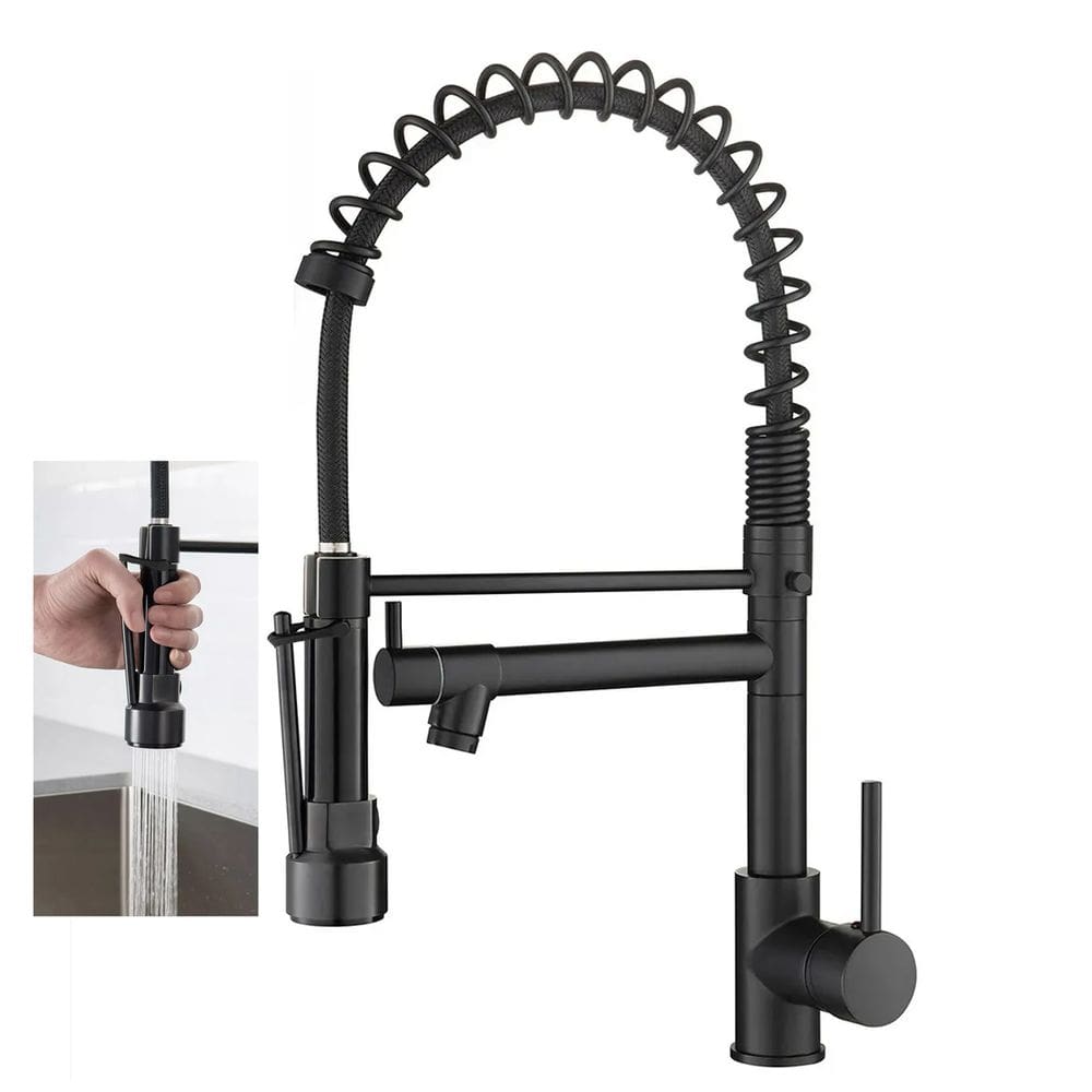 Torneira para Cozinha Gourmet Luxo Aço Dupla de Mesa Com Monocomando Misturador Agua Quente e Fria Mola - Preto 1/2