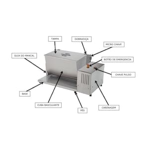 Especificações: - Construção 100% em Aço Inox - maior durabilidade, higiene e fácil para limpeza - Motor: 3/4 cv Bivolt (Monofásico) - Sistema Basculante - facilita a remoção da mistura e otimiza o processo de produção - Redutor: Feito em ferro fundido - Capacidade da Cuba: 25 kg - Produção: 100 kg/h