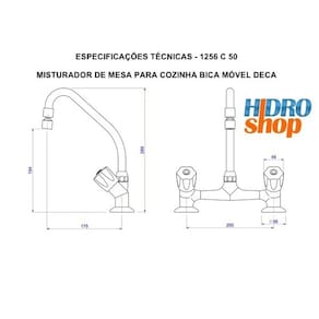 Misturador para Cozinha de Mesa 1256 C50 Deca Cromado Linha Prata Com Arejador Articulado.
