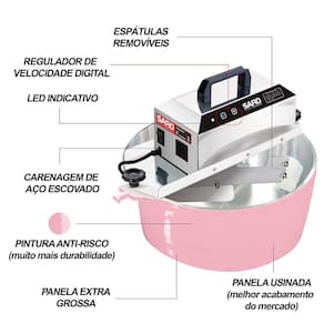 Esse Misturador tem capacidade de 10 litros, tendo capacidade de 5k de massa pronta e 20 caixas de leite condensado! Conta também com regulador de velocidade digital, um botão para subir e outro para diminuir a velocidade, espátulas de silicone, sistema RED-plus capaz de aumentar a vida útil do motor e diminuir sua manutenção!