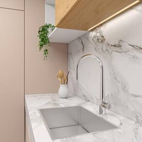 O dia a dia na cozinha fica muito mais funcional, prático e esteticamente agradável com o Misturador Monocomando da linha Minimal. Seu design versátil se adapta perfeitamente a diferentes estilos de decoração, mantendo a harmonia com ambientes contemporâneos. Além de seu visual moderno, o destaque vai para a bica móvel e flexível, que oferece um alcance de até 1,5 metros, proporcionando maior liberdade nas tarefas do cotidiano. O sistema de monocomando permite ajustar a vazão e a temperatura da água com precisão, unindo praticidade e tecnologia ao seu espaço.