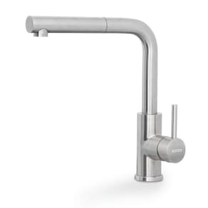 Instalação: Bancada Material: Aço Inox AISI 304 Monocomando: Sim Água quente e fria: Sim Temperatura máxima: 90 graus Bica articulável: Não Arejador: Sim Sistema anti-gotejamento: Sim Corpo giratório: Sim, 360 graus Extensor: Sim, 50 cm.