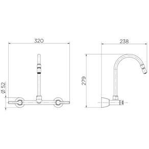 Misturador para Cozinha Duplo Comando de Parede Gali Docol - Instalação de parede.