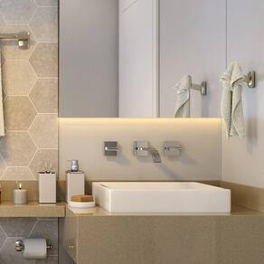 Misturador moderno em linhas retas e limpas, possui a vazão em forma de jato laminar.