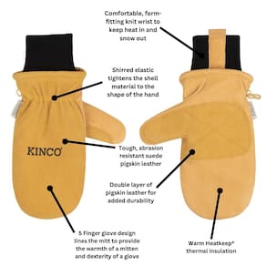 Kinco, KIN-901T-L, luva de couro premium para trabalho e esqui com cera impermeável Nikcera, grande
