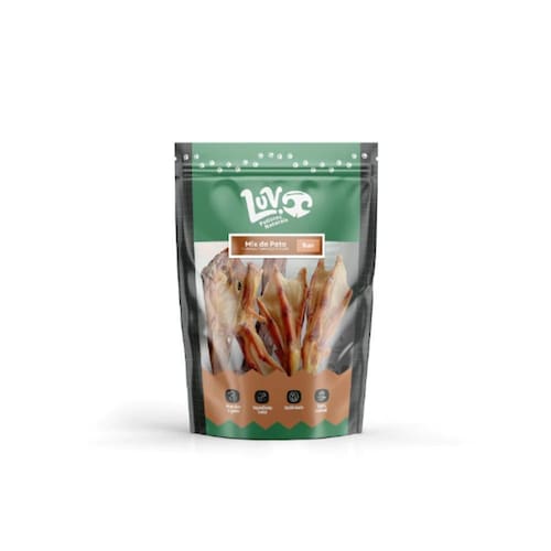 Composição básica: cabeça, pescoço e pés de pato desidratado.