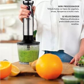 Este aparelho multifuncional combina mixer, processador e batedor em um único equipamento, tornando o preparo de alimentos muito mais fácil. Ideal para preparar vitaminas, molhos, cremes, massas leves e triturar ingredientes.
