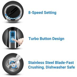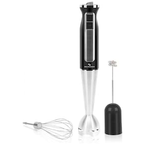 Mixer 3 em 1 com 8 velocidades, motor de 500W, função turbo, lâmina de aço inoxidável, acessórios removíveis para limpeza. Inclui batedor de leite e batedor de ovos.Acompanha copo