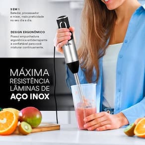 Mixer 3 em 1 Inox Duas Velocidades Batedor Fue Miniprocessador EMX02 220V - EOS