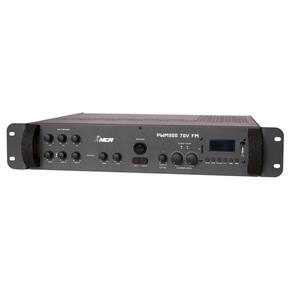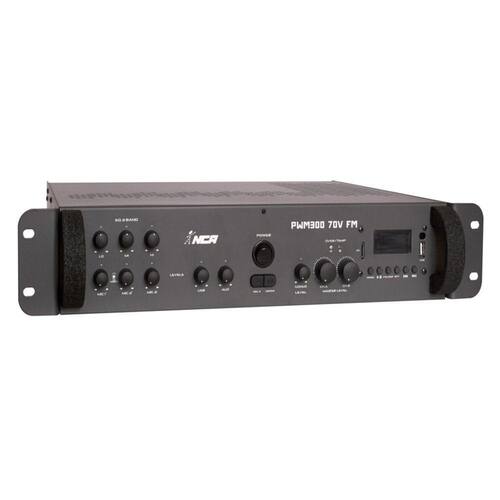Mixer amplificado 600w rms pwm30070v fm bivolt Amplificador para sonorização ambiente, podendo trabalhar em 4 ohms 300 + 300w rms ou 70 volts 300w rms . Gongo ding-Dong c.V.I. Módulo media player: tela lcd de 2" polegadas, rádio fm com 18 posições de memória, change folder, entradas usb pendrive , sd card e controle remoto. Potência máxima total sem distorção: 600 w rms em 4 ohms, ou,300w rms em 70v - 50 ohms. - Entrada usb - Controle remoto - Entrada micro sd card - Busca de músicas por pastas - Rádio fm - Gongo - Display lcd Especificações técnicas Entradas: 2 microfones mic1 e mic2 com a função mic priority m.P. E c.V.I. 1 microfones mic3 p10 c.V.I. 2 entradas auxiliares in com conectores p10 canais l/r 2 entradas auxiliares a1 e a2 com conectores rca estéreo s.A E c.V.I. Saídas: 2 send com conector p10 1 remote aciona o gongo a distancia 1 auxiliar line out com 2 conectores rca mono 2 output a e output b com borne positivo e negativo e c.V.I. 1 saída 70v quando output a e output b são ligadas em bridge caixas com trafo de linha 70v respeitando potência máxima e perdas com cabos. Equalizador: 3 bandas - Low, mid, high Consumo total à potência máxima: 840 w rms Proteção: alto-Falantes / fusível / overload - Sobrecarga e curto Alimentação:127/220v Ean: 7898623883048