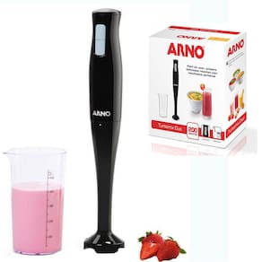 Mixer Turbomix Duo MX21 110V pretoMais facilidade no seu dia a dia Possui 200W de potência, 2 velocidades para adequar aos diferentes alimentos e copo medidor de 500ML. Compacto e eficiente, o TurboMix Duo possui uma lâmina de aço inoxidável, mais durável, que não enferruja e pode ser usado direto na panela ou levado na máquina de lavar louça. Fácil de usar, prepare deliciosas receitas com resultados perfeitos. Prepare receitas variadas como sucos, vitaminas, sopas e caldos de forma rápida e prática. Características Principais:Marca: ArnoModelo: MX21Voltagem: 127VVelocidades: 2Cor: Preto Ean: 3016661154638