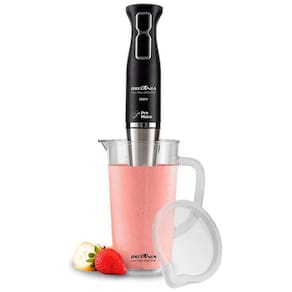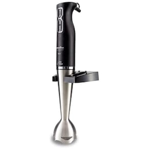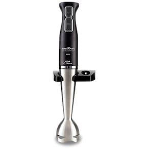 Mixer Britânia Inox Lâminas Pro Maxx com 350W de potência, design ergonômico, função pulsar/turbo, copo desmontável e haste em inox. Ideal para uso em jarras, tigelas e panelas.Acompanha copo