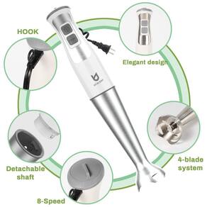 Mixer UTALENT U 3373 com 8 velocidades, 250W, acessórios fáceis de limpar, espumador de leite, varinha de aço inoxidável com sistema de 4 lâminas para mistura eficiente.