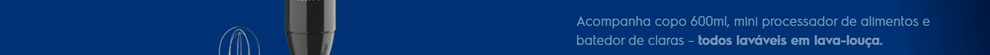 Equipado com mini processador de alimentos, batedor de Claras, copo com 600ml e cabo de 1,2 metros, o Mixer 3 em 1 Inox deixa seu dia a dia mais prático e processa os alimentos de diversas texturas no ponto ideal.