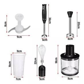 Mixer 4 em 1 com 500W de potência, inclui mixer, batedor, picador e triturador. Lâminas de aço inoxidável, design ergonômico, peças removíveis e compatíveis com lava-louças.Acompanha copo