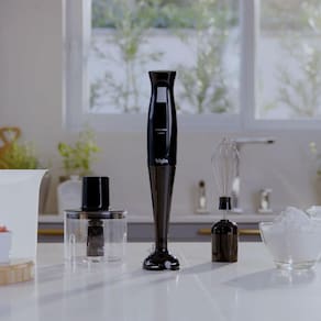 Com 200W de potência, garante alta performance para misturar e triturar alimentos com rapidez. Acompanha copo de 700ml, miniprocessador com capacidade de 300ml e fouet flexível para massas leves.