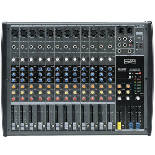 Os mixers da série CMX da Mark Audio foram projetados para as mais diferentes aplicações. Chave para acionamento do monitoramento do nível de sinal do efeito digital. Todos os modelos podem ser utilizados em igrejas, bares, salas de ensaio, etc., com ótimos resultados. Especificações do Fabricante: -12 Canais, -FADERS 60mm, -Controle de ganho por canal, -Entradas balanceadas, - POWER +48V , -16 presets de DELAY, -Equalização HIGH, MID e LOW, -Controle PAN, -PFL, -Entrada para dispositivo USB / MP3 PLAYER, -AC 100-240 VAC 47 - 63 Hz, Dimensões: 505mm x 375mm x 75mm LxPxA Marca: Não Informado Ean: 7898640360300