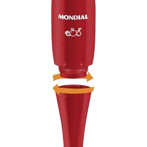 Mixer Mondial M-15-R com 200W de potência, lâminas em aço inoxidável, design ergonômico, fácil de usAcompanha copo